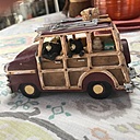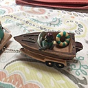 I have owned this for awhile. Bought in an Antique Store.Time to pass it on to someone who will enjoy it like myself. Don't want the grand baby to break it. It consists of a Ford Station wagon, a Shasta type trailer w/wings & a boat w/outboard. $50.00 + shipping.