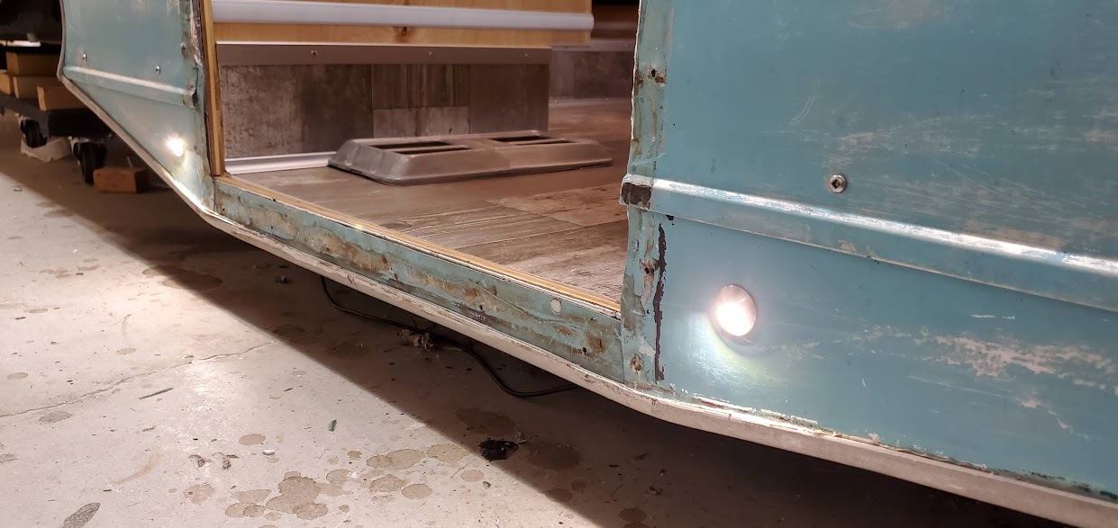 On my last vintage rebuild I installed two stainless steel "puddle" lights. They've worked out really well for us. They light up the ground but aren't obnoxious to neighbors. And we turn them off when going to bed. I'll be installing the same on my next teardrop build.