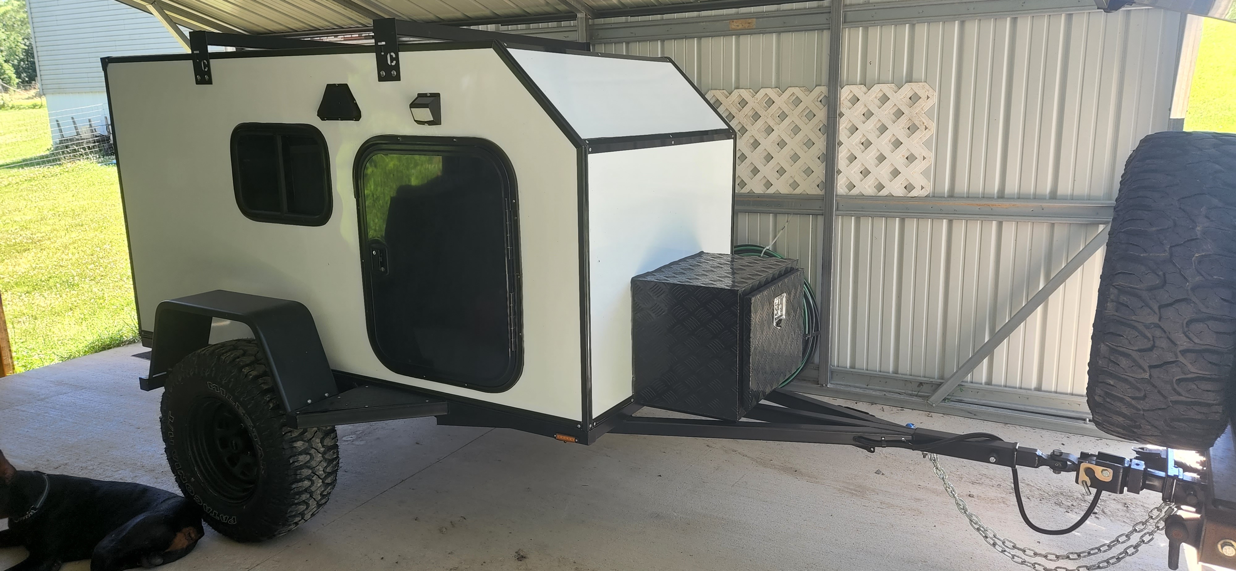 All composite build on 2" 11ga square tube frame. 24" of ground clearance on 31" off road tires. Timbren Off Road Axle-less suspension. Electric brakes. Very well set up for off-road camping