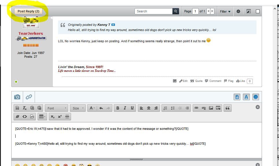 In order to quote multiple posts in a single reply box, you have to click the "Quote" button on each message that you want to quote, just as before. Here, there is an extra step: After selecting your posts to "quote" (the quote button will turn orange) then you have to click the "Post Reply" button in the floating toolbar at the top of the window.