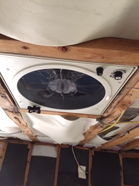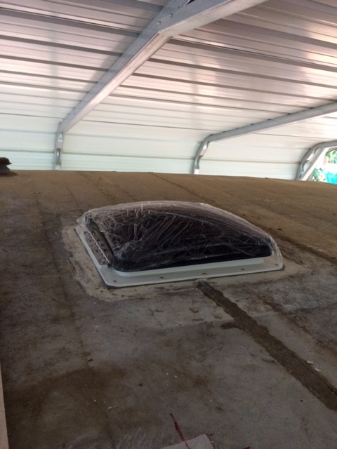 Removed both disentegrated roof vents.Did away with the one on outer edge and covered with aluminum sheet.