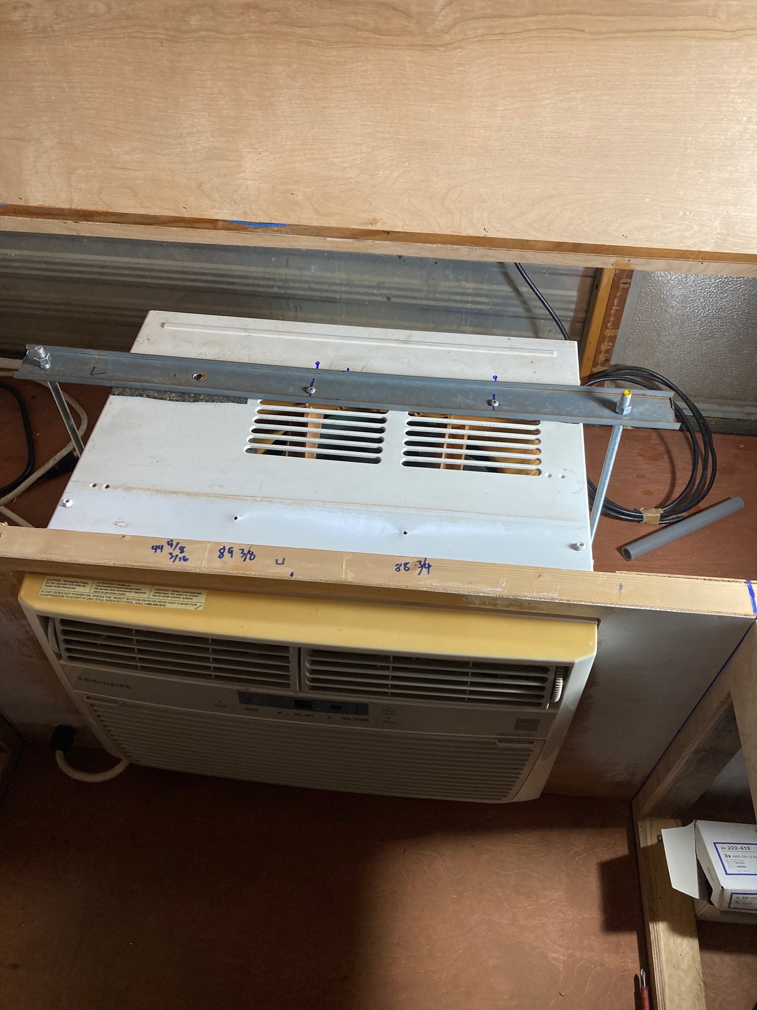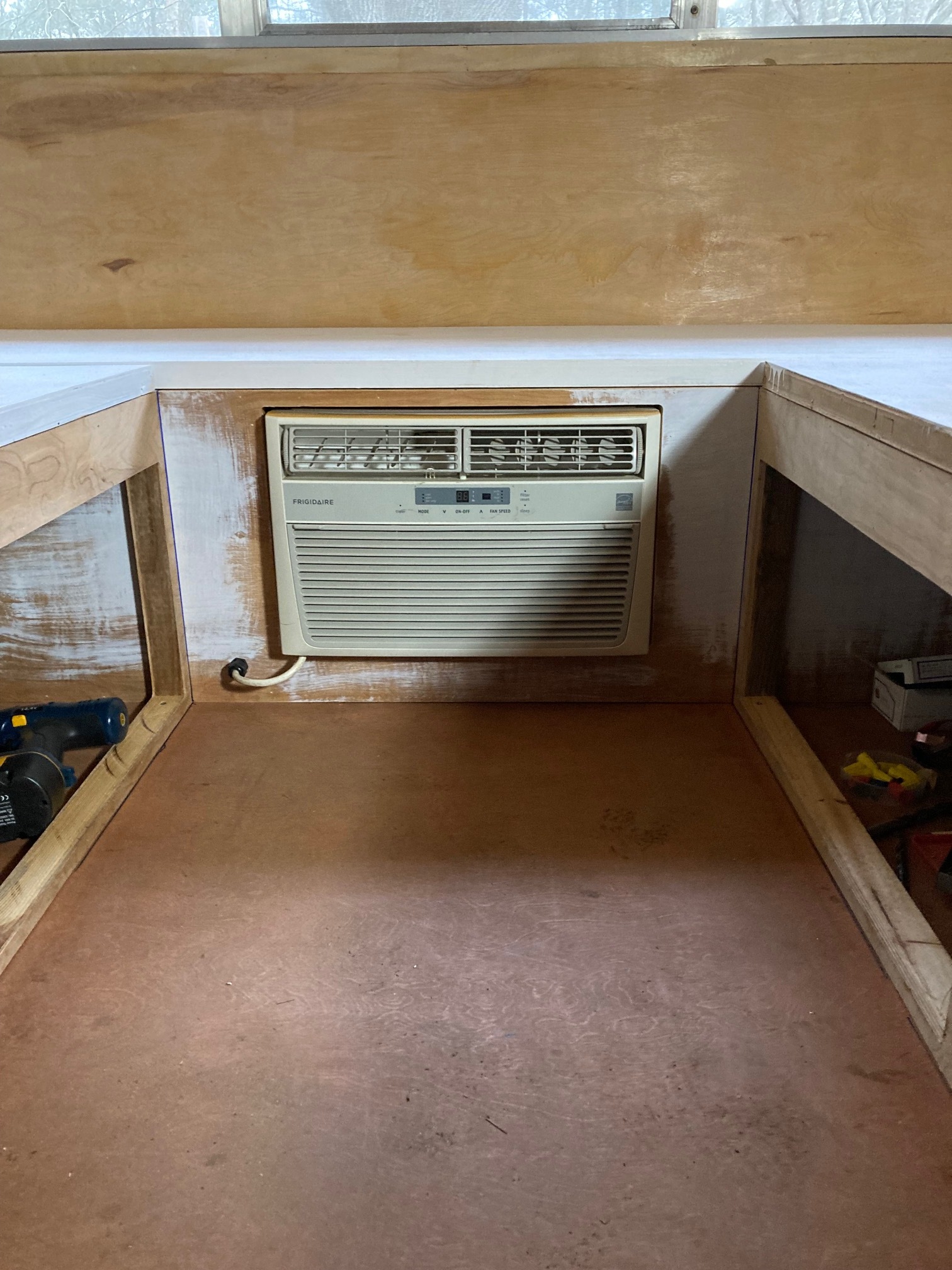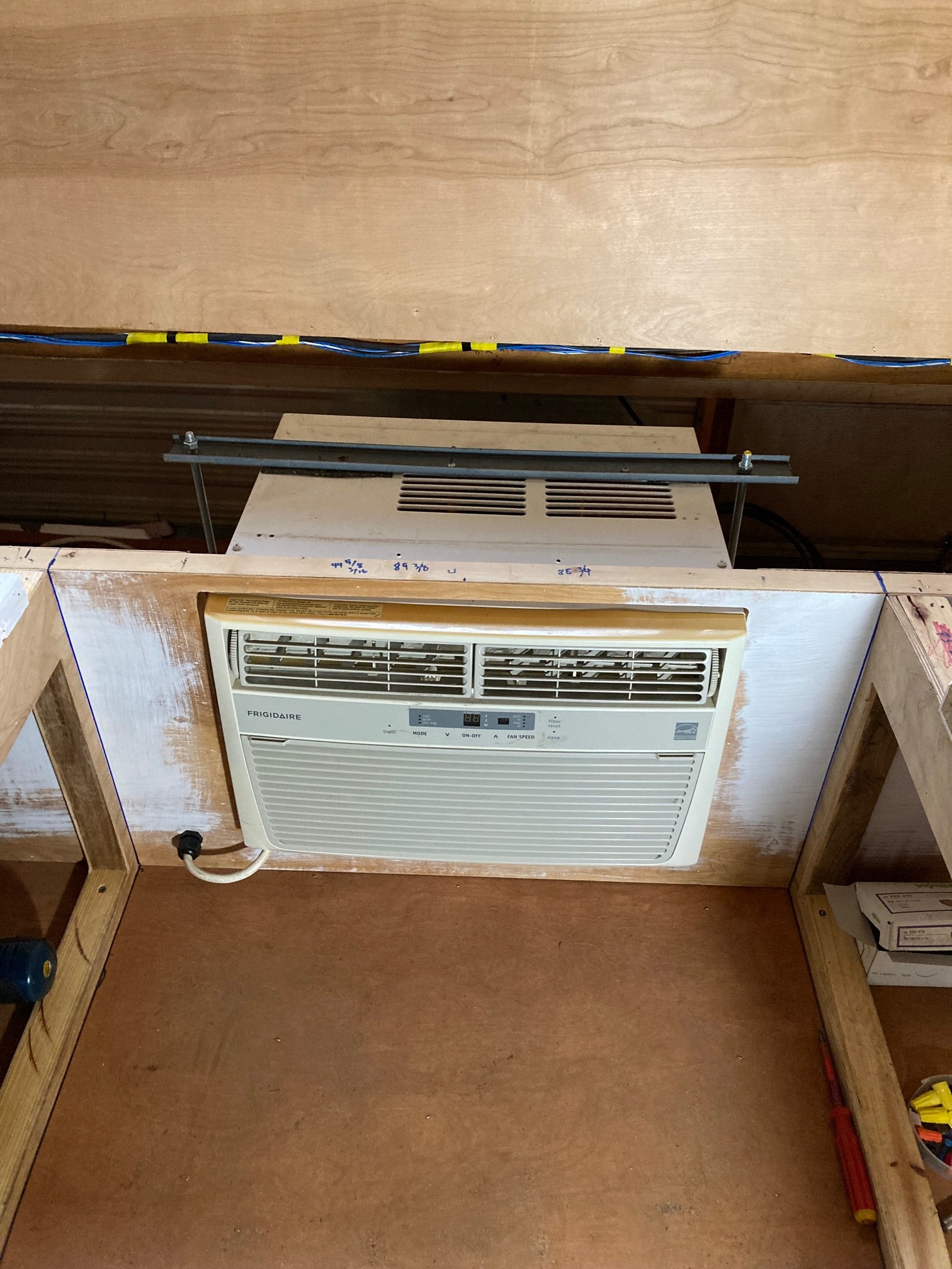 Looking great! I like the t&g interior! Good idea with the exhaust fan for the air conditioner. Should help its efficiency quite a bit.