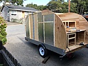 We loved our first tear but the wood paneling finally succumbed to water damage. This second built is still on HF 4x8 trailer but modified with extended tongue (for bike rack) and we built slightly over the wheels to give a few more precious inches. Skinned with aluminum.