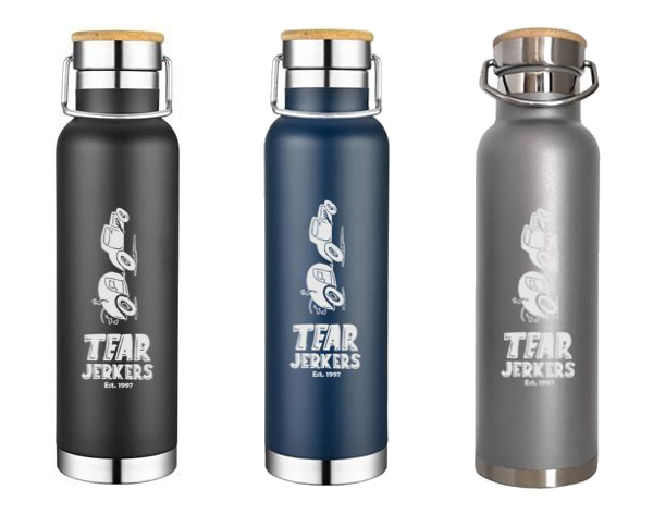 These awesome 20oz "TearJerkers" bottles are perfect for your morning hot coffee, lunchtime iced tea, happy-hour margarita, and even your evening hot toddy next to the campfire! The double-wall insulated stainless steel bottles have screw-top lids and are printed with the TearJerkers logo. They can keep drinks hot for up to 12 hours, or cold for up to 24 hours - perfect for your morning kayak or afternoon hike!